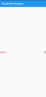 As the name said hint in the dropdown button will display the down indicator with empty value or text.to set the default text you can use the hint property. As we have set Text "Please select your state".